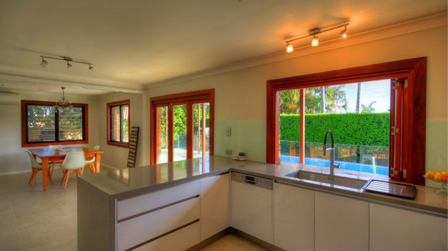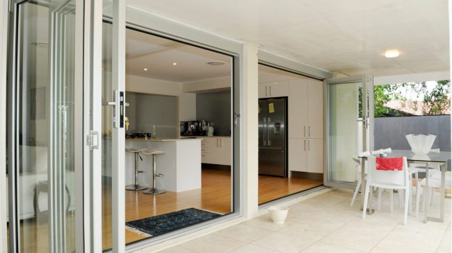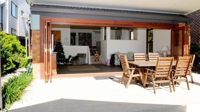 Timber bifold doors and windows, Front entry pivot door, Louvre windows